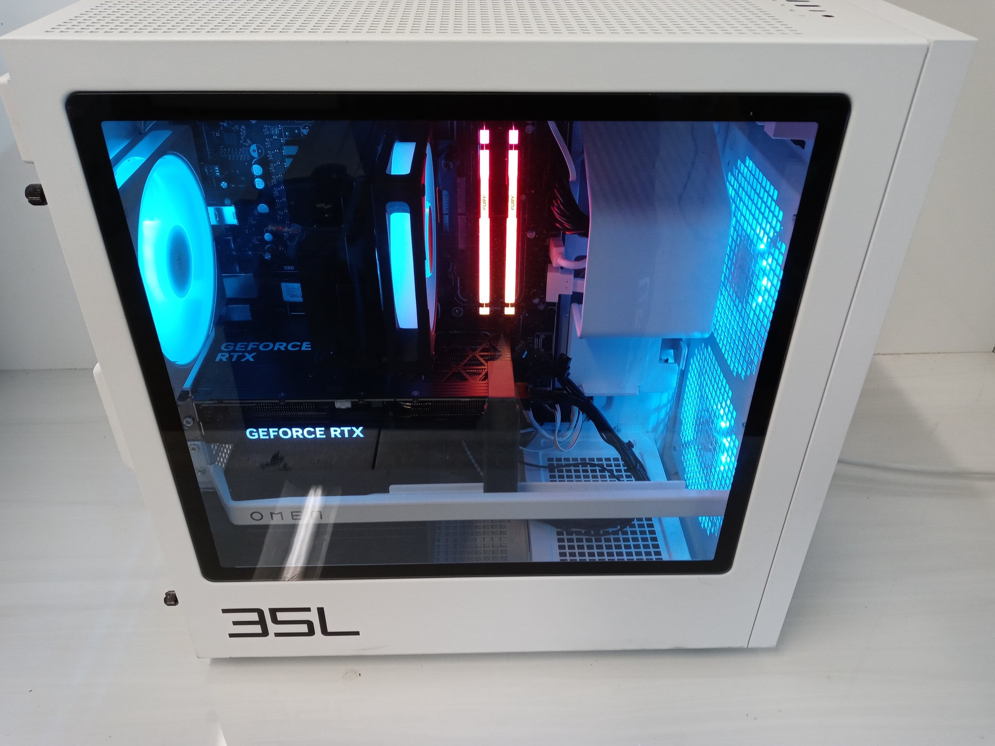 • Custom white Omen 35L case with RGB fans